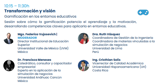 - Mgs. Federico Vujosevich — Moderator. Institutional Director of Higher Education, Universidad Valle de México (UVM), Mexico.